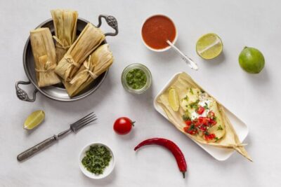 Tamales are a traditional Mesoamerican meal made of masa (lime-treated maize dough) that is filled with various toppings and steamed in a corn husk or banana leaf. It’s a portable, pre-Columbian dish that has been enjoyed for centuries and is still popular today, particularly during holidays and celebrations.