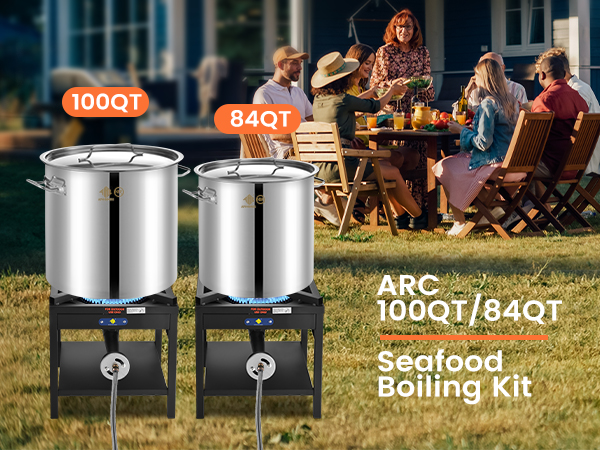 Home Boiling Kit Set ARC 100QT Stainless Steel Seafood Boiling Kit with 48″ Mixing Paddle, 200,000BTU Propane Burner for Outdoors Cooking, Large Stock pot w/Basket for Shrimp, Lobster, Crab Crawfish, Turkey Deep Fryer