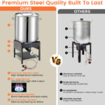 • PREMIUM STAINLESS STEEL: Compared to Aluminum, Stainless Steel has a higher resistance to heat and is ideal for heavy-duty cooking and long periods of cooking time. Great for boiling crawfish, crab, shrimp, and stews or soups