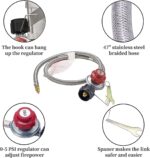 For convenient setup, this propane burner comes complete with a 5 PSI regulator, 47-inch steel braided hose, spanner, hook, and connector – everything you need to start cooking right away.