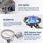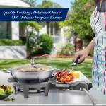 For added safety, this stove includes a gas lock feature. The ignition knob allows for easy flame adjustment, making it ideal for cooking or frying. Additionally, this outdoor burner is compatible with standard propane gas tanks.