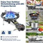The ARC propane burner stove is designed for durability, with its heavy-duty cast iron construction and weather-resistant coating that enables it to withstand any outdoor conditions.