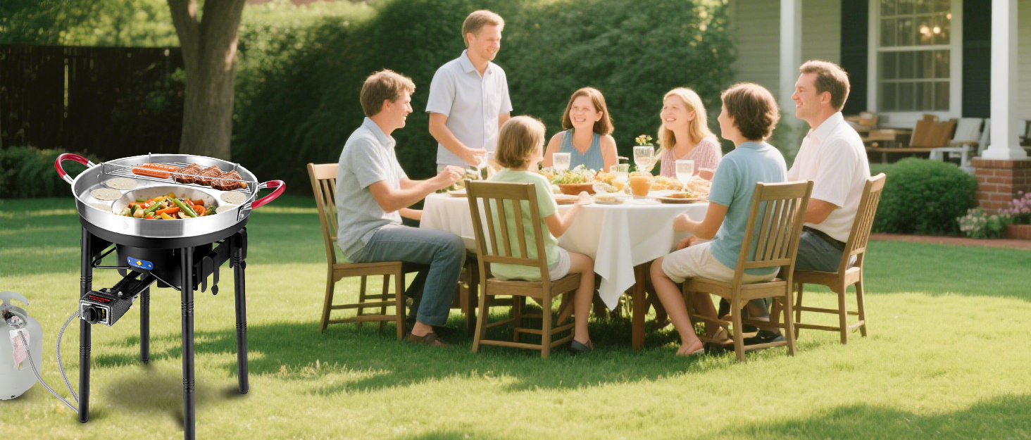 ARC 23″ Concave Comal Set w/50,000BTU Propane Grill Burner, Stainless Steel Griddle Fryer Cookware Set