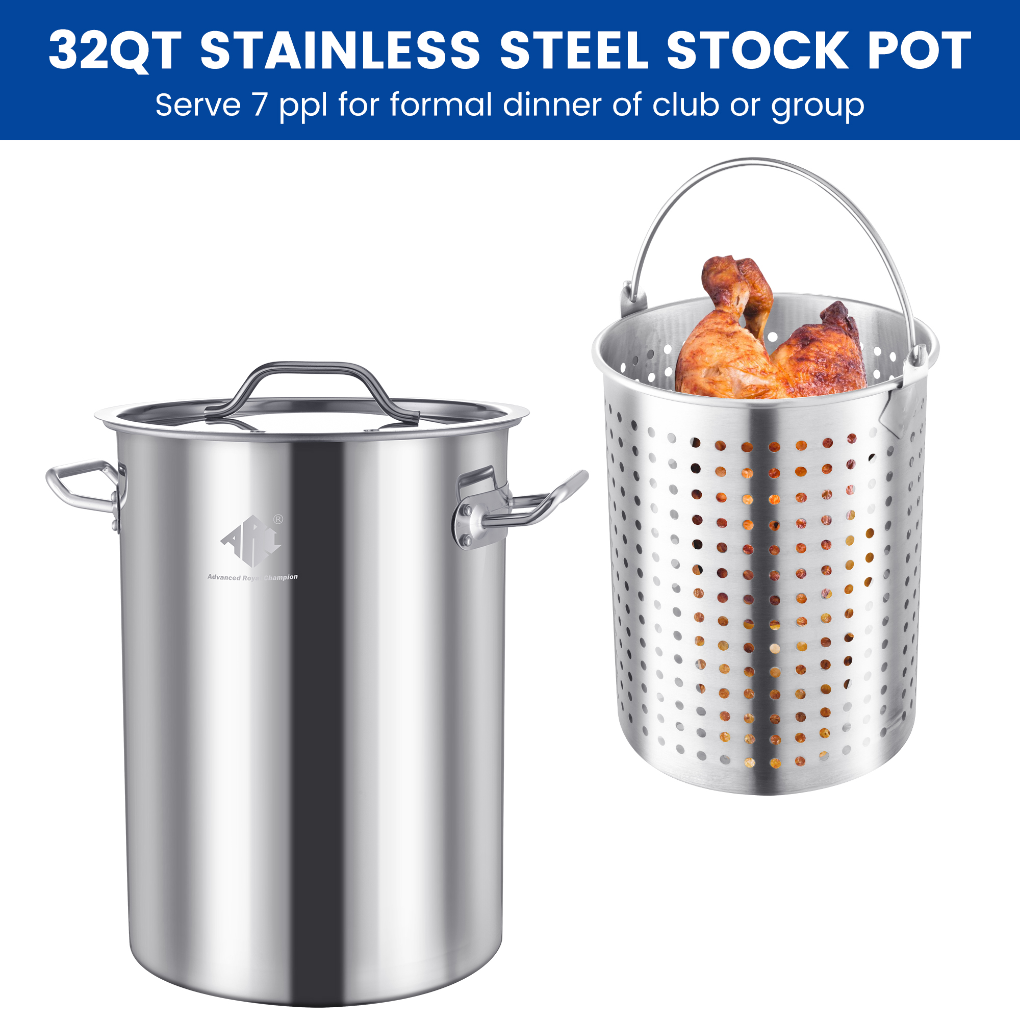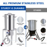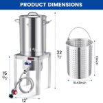 - 32QT Large Capacity—With a spacious 32-quart capacity, this turkey fryer can easily accommodate 20 lbs of large turkeys and other ingredients, making it ideal for cooking meals for big gatherings or events.