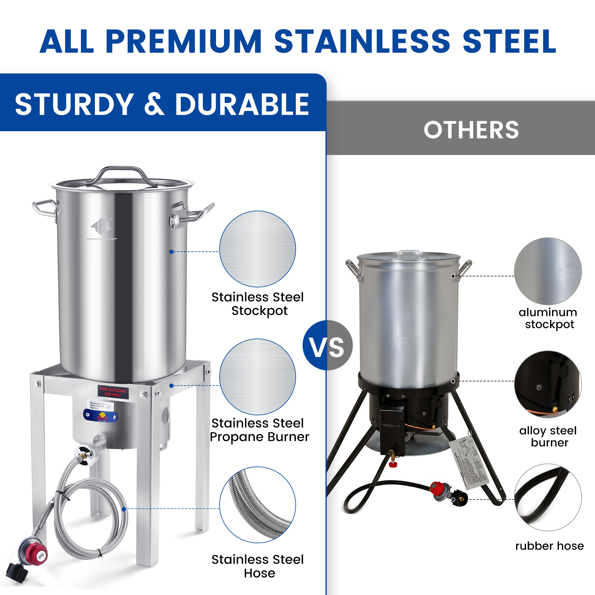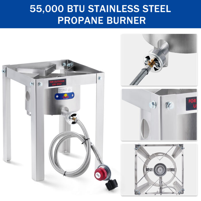 - 55,000 BTU Heat Output—this burner has high heat output and improves cooking efficiency for a family party, from boiling pots of water to searing meats to perfection. Whether it is turkey fry or crawfish boil is your cooking good partner.