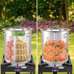 If you're looking for a set that can help you cook seafood, shrimp, crab, lobster, fry turkey and even steam tamales, then the Seafood Boil Pot With Basket Kit is the perfect choice for you. With an impressive heat output of 200,000 BTU/h, this kit can cook your food quickly, making it an ideal addition to your outdoor burner kit.