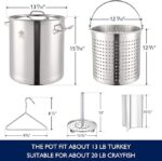 The propane burner frame, seafood boil pot, basket, steamer rack, divider, and steamer tube are constructed from durable stainless steel, designed to withstand outdoor conditions with ease. This strong and stable material is ideal for outdoor use and can adapt to various weather conditions.