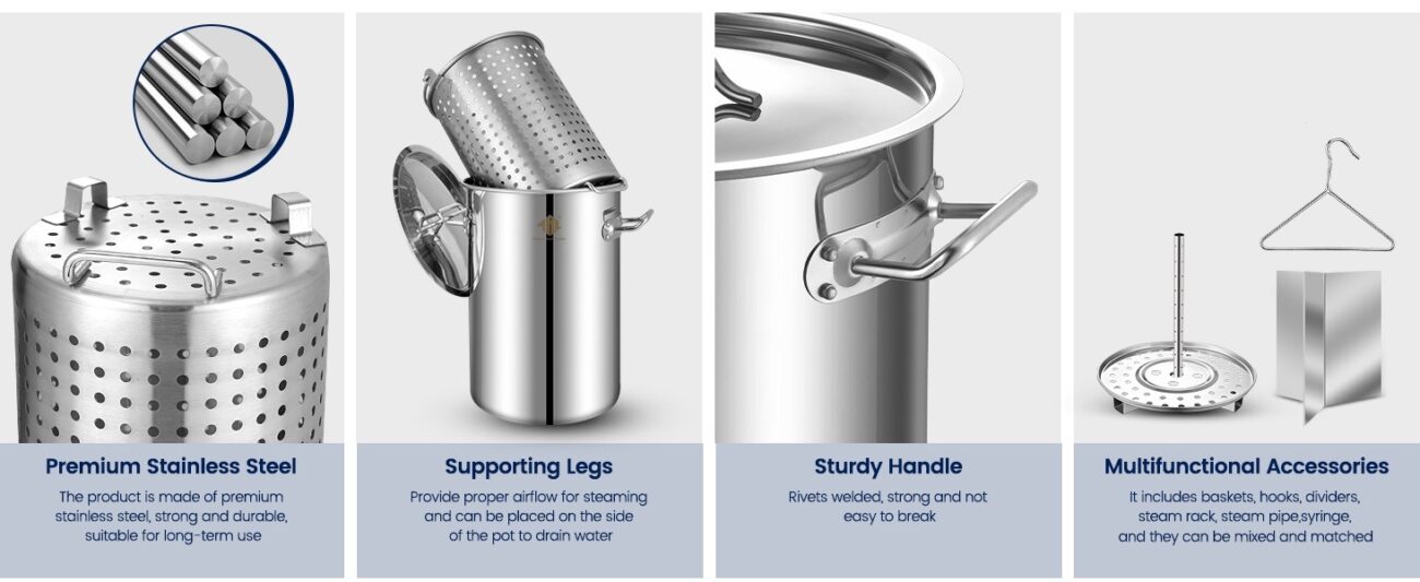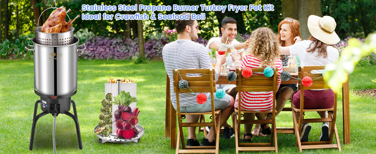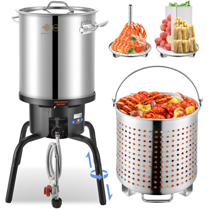 Package Include | Burner*1 Pot*1 Lid*1 Basket*1 Steamer Rack*1 Steamer Pipe*1 Divider*1 Hook*1 20PSI regulator&hose*1 |