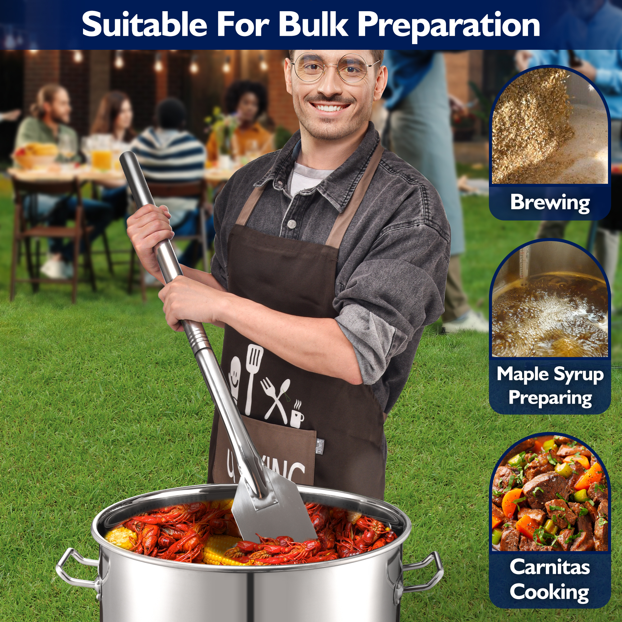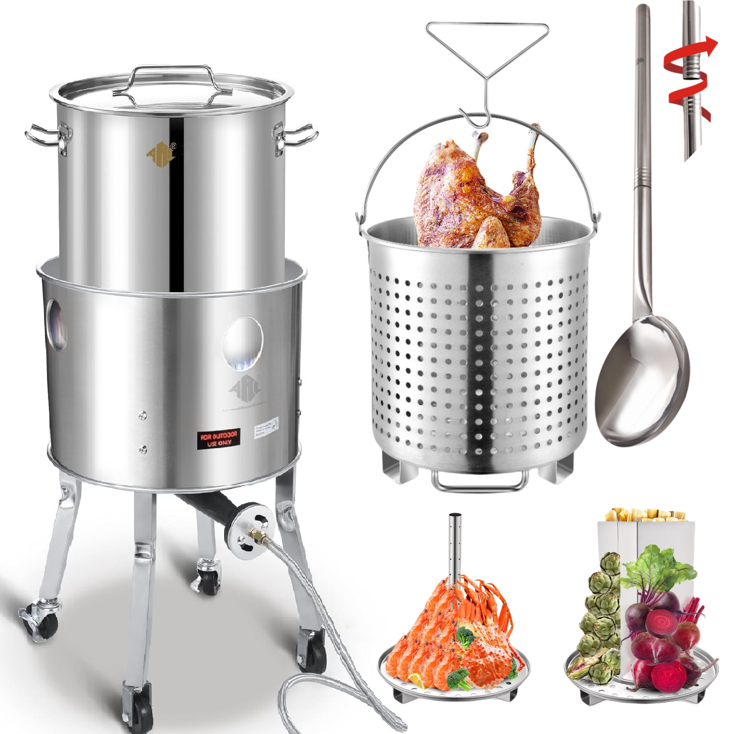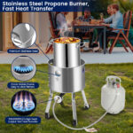 ARC 52QT Stainless Steel Turkey Fryer Pot with 36″ Mixing Paddle, Propane Burners Kit, Tamale Steamer Pot with Basket, Steamer Rack, for Outdoor Cooking, Seafood Boil, Crawfish Boil, Home Brewing