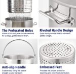 This seafood boiler basket will be placed close to the bottom, but the bottom of the basket will have three raised fulcrums, about 0.04 inches. The extra strong handle and heavy-duty lifting hook can handle up to 200lb of food. It is an excellent tool for a turkey frying pot.