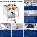 • 200,000BTU High-Output: 10″ Large Cast Iron Burner great for boiling and frying.Suitable for different cooking needs