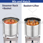 • Premium Stainless Steel: Crab Boil Pot, Strainer Basket, Lift Hook, Steamer Insert Rack, and a Divider is made of rust-proof and sturdy stainless steel. Strong and stable, great for outdoor use