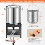 ARC 64QT Stainless Steel Seafood Boiling Turkey Fryer Kit with Strainer and Propane Stove with 200,000BTU, Stainless Steel Crawfish Boil Pot and Burner