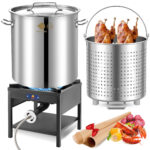 ARC 100QT Stainless Steel Seafood Boiling Turkey Fryer Kit with Strainer and Propane Stove with 200,000BTU, Stainless Steel Crawfish Boil Pot and Burner