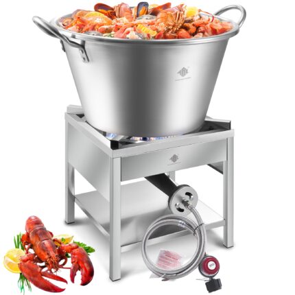 - READY TO USE WITHOUT ASSEMBLY: Stable and sturdy combination, high-quality materials for frying turkey, cooking crawfish, seafood, shrimp, crab,lobster and tamale steamer for your party