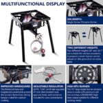 This adjustable propane stove offers two convenient height options – 20″ and 28″, to suit different cooking needs. The versatile design allows the powerful burner to be placed directly on the ground, on a low table, or even on a tree stump for outdoor cooking flexibility.