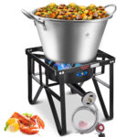 - LARGE BURNER: This outdoor cooking wok burner comes with a supersize 10″ cast iron burner and has a powerful 200,000 BTU high heat output, This is a powerful outdoor burner for heating up medium and larger pots and is a great tool for holding 20+ ppl party.