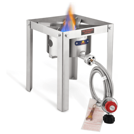 The high-pressure system at 100,000 BTU/h, is great for cooking or frying.