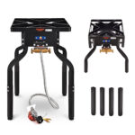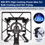 The heat of 80,000 btu/hr is enough for outdoor travel, BBQ, fishing, and camping. ARC Propane Burner has welded steel frame and wide-set legs for stability.