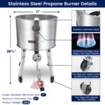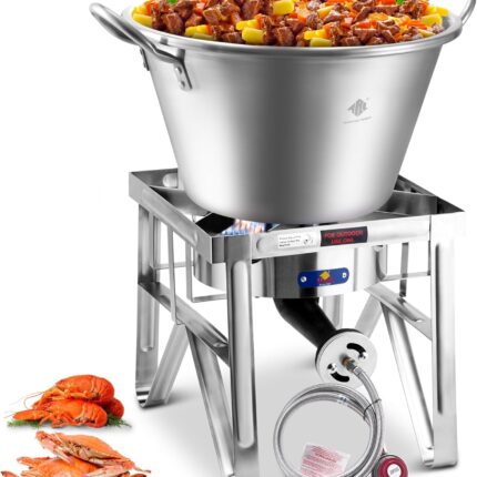 🍲Stainless Steel Frame: The ARC propane burer frame and outdoor wok are made of rust-proof and sturdy stainless steel. The large cooking area fits for pots with adiameter over 7″ and a wok bottom diameter between 7″ -17″.