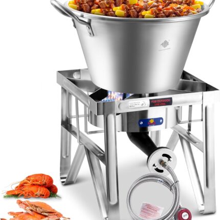 🔥Large Cast lron Burner: 10″ Heavy-duty Cast iron Burner with 200,000high-output, great for boiling and frying. The flame can be controlled by the0-20PSl regulating valve for any cooking needs.