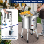 - Mobile Design: This portable propane burner has four-wheeled legs and it’s convenient to move around. The detachable legs for easy storage and transport.