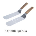 - Two BBQ spatulas: long handle, heat insulation and anti scalding, one of which is hollow design. Convenient for frying food.