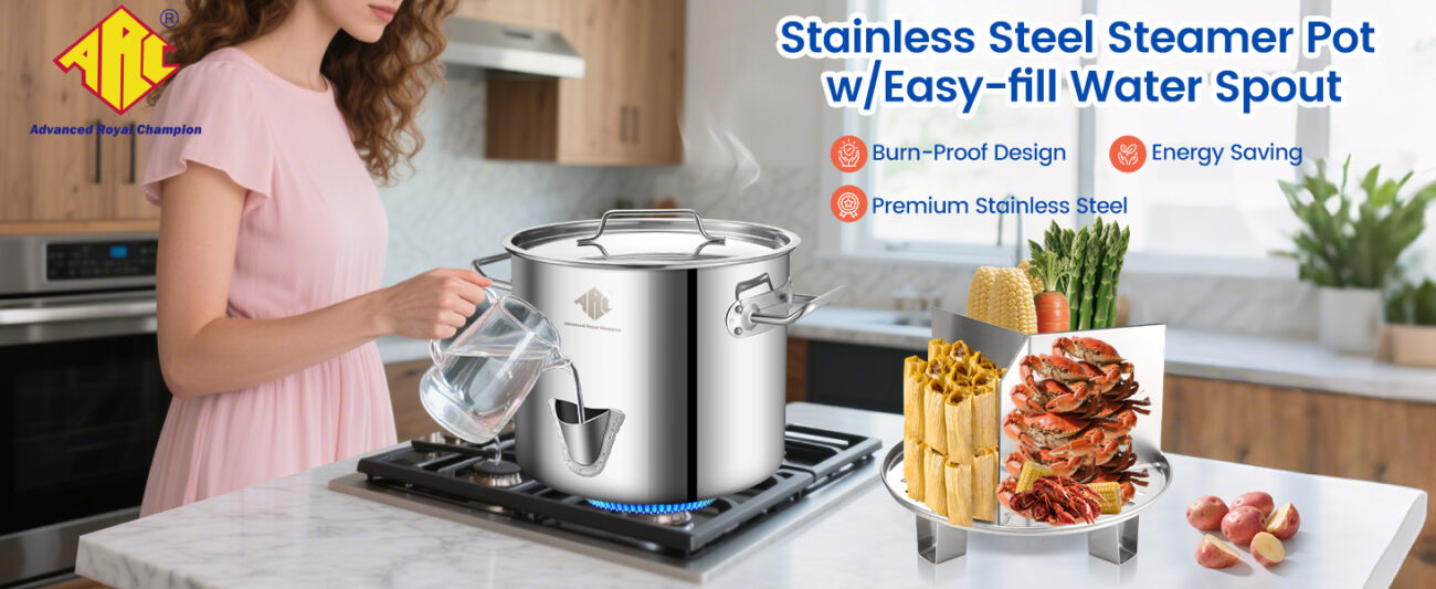 • NOT A STOCKPOT–Easy Pouring Water Spout Design: The maximum water level is 2.5″. It’s a steamer and CANNOT use as a stock pot! Adding more water without opening the lid when cooking.